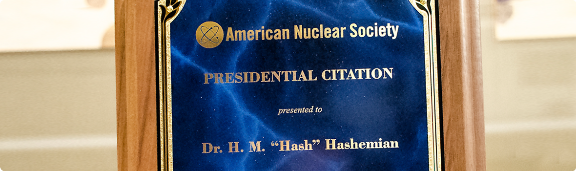 The citation was presented to Dr. Hashemian on June 14th during the 2022 American Nuclear Society Annual Meeting held in Anaheim, CA. The citation reads, “Presented to Dr. H. M. ‘Hash’ Hashemian for his many and varied contributions to the American Nuclear Society, including his service as Chairman of the Honors and Awards Committee.”