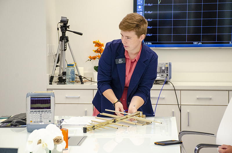 Morgan Berg is an Electromagnetic Compatibility (EMC) Engineer at AMS who plays a crucial role in ensuring the systems installed in nuclear power plants operate seamlessly with other equipment. She enjoys sharing her knowledge with others and often demonstrates EMC concepts such as shielding effectiveness and the use of different antennas. Before joining AMS, Morgan studied at Minnesota State University, Mankato, and served as a resident advisor.